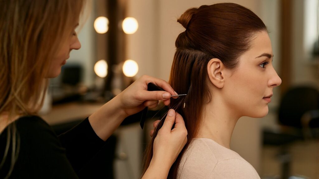 Braid your hair loosely before sleeping to prevent tangling, and schedule regular salon appointments to keep the extensions secure and fresh. Following the right routine lets you enjoy beautiful extensions for months.